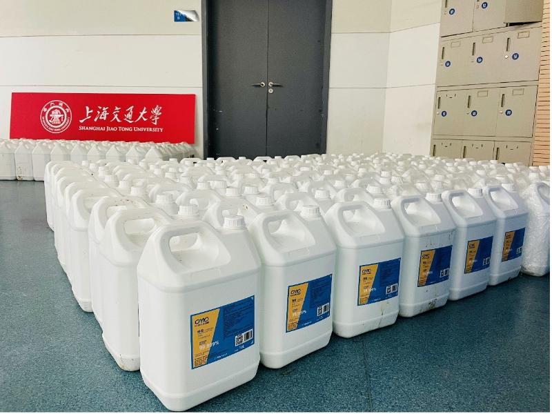 这也是颜健校友携公司研维科技第二次捐赠助力母校疫情防控工作。2022年3月,交大出现确诊病例,研维科技迅速响应,第一时间向母校捐赠了38000瓶漫度®次氯酸免洗手消毒液和10000袋漫度®儿童卫生湿巾,为母校防疫保驾护航。