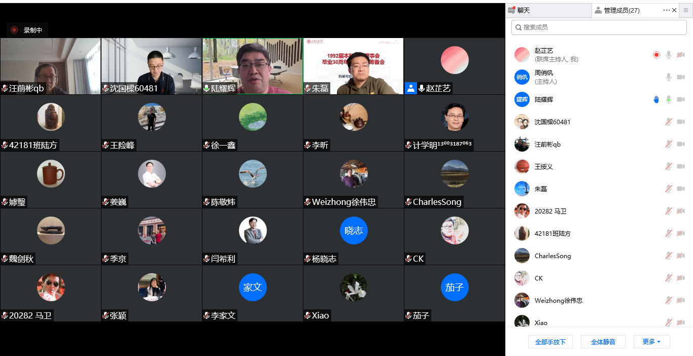 4月24日,1992届本科班级理事会毕业30周年纪念活动筹备会于线上成功举办,20余名班级理事云相聚,为毕业30周年的团聚献言献策。