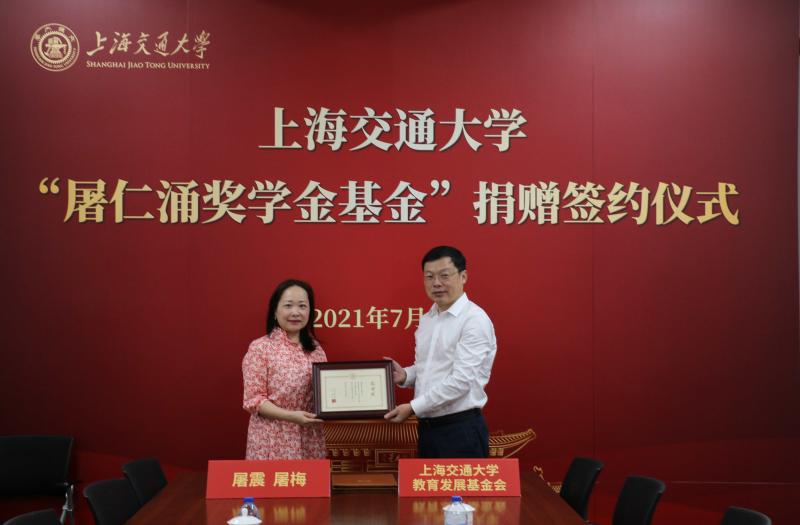 买球官方网站1956届动力机械系校友、买球官方网站屠仁涌教授的儿子、1986届精密仪器系校友屠震与女儿屠梅,为弘扬父亲对教育事业的赤诚之心,助力学校发展,慷慨捐赠人民币100万元,用于设立“屠仁涌奖学金”基金,奖励买球官方网站品学兼优的动力机械专业、精密仪器专业本科生和研究生。