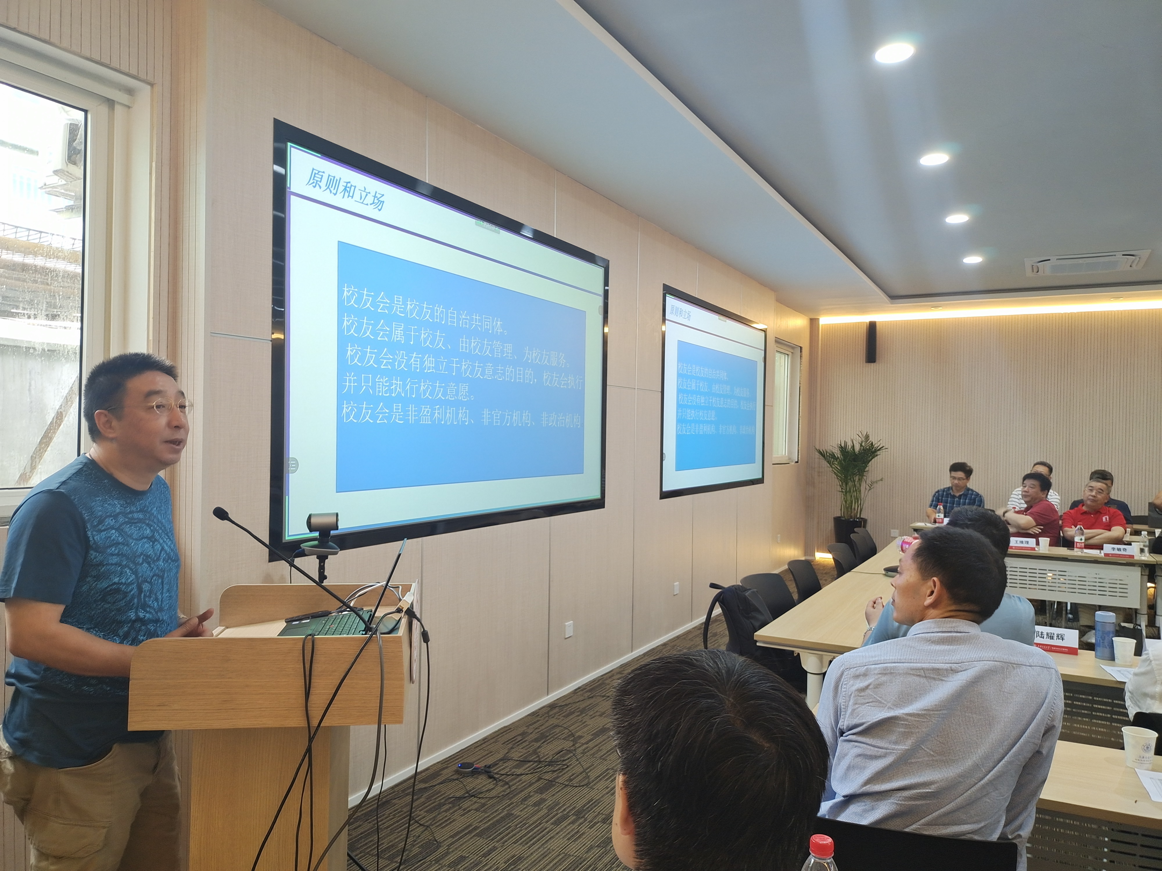 1986届校友金晓中分享了参与筹备材料学院校友会工作经验,强调校友会须有严格的章程和规则,确保“让每个校友都实现奉献,让每个校友都获得收获”。