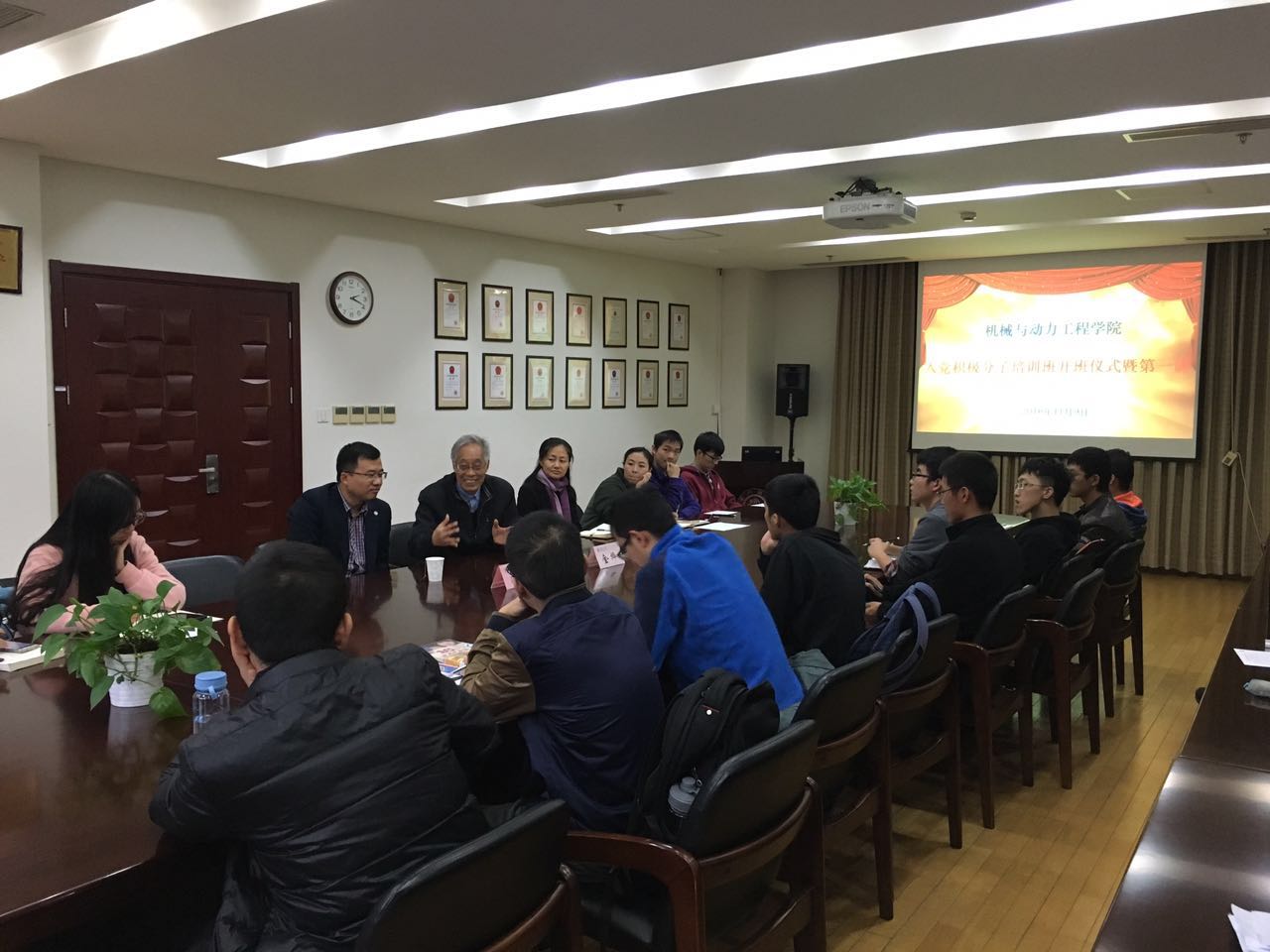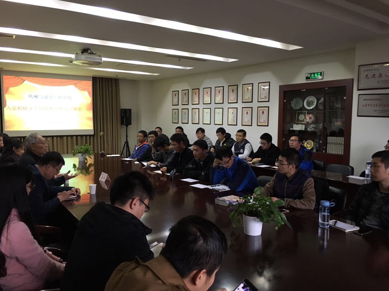 11月9日下午,买球官方网站入党积极分子秋季培训班开班仪式暨第一讲在机械楼F210会议室举行。买球官方网站关工委副主任、智能制造所原教工党支部书记、上海市工程图学学会理事长、全国高校制造自动化研究会华东分会理事长金烨,学院党委副书记、学生党总支书记顾希垚,学生党总支副书记陶晓红,学生党总支辅导员楼国成及60余名入党积极分子同学参加活动。活动由学生党总支研究生党建工作组长于爱涛主持。